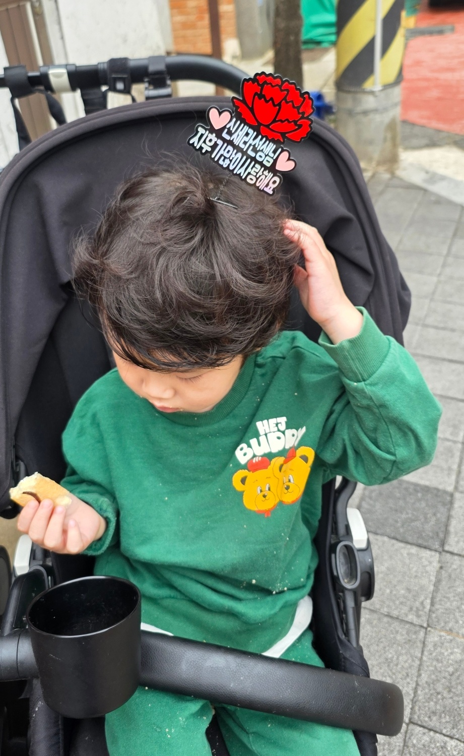 아이들 머리에 예쁜 리본핀 하나씩 꽂아줬어요.